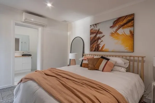 This 3 bedroom 3 bathroom villa is located in a prime position just set back off Melbourne St, Mulwala. It has an open plan kitchen & living, laundry, reverse cycle heating & cooling in all rooms and is fully fenced with private backyard.
